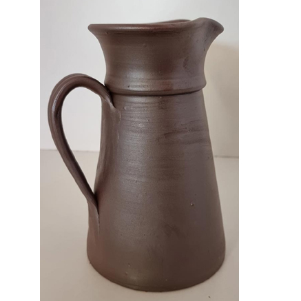 Ce pichet tourné a la main de forme traditionnelle avec une large ouverture qui permet un nettoyage facile. Tourné dans la tradition et cuit au four a flamme directe. Ce qui lui donne de belles nuances.