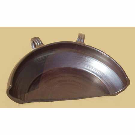 Demis plat ouvert qui se place devant les braises de la cheminée pour cuire les pommes et pommes de terre sans les éplucher. Cette poterie tenait les pommes chaudes et léser une odeur agréable dans la cuisine.