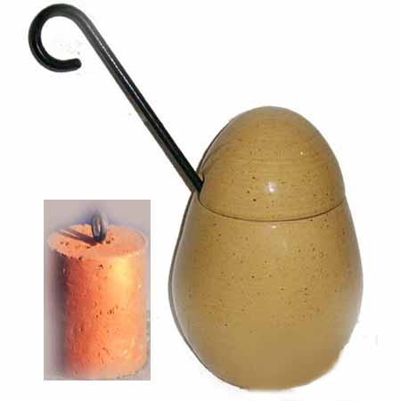 Ensemble allume feu composé d’un pot en grès de la couleur et de la forme d’un œuf d’une pierre allume cheminée et d’une tige en métal. Le fonctionnement ? cliquez ici