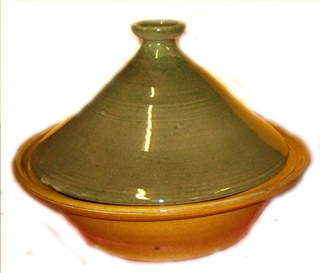 Ce plat à tajine est en deux partie, la base d’une contenance d’environ 2,3 l et un chapeau en grès.